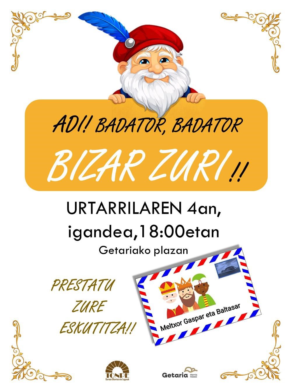 Urt 04igandea 18:00 Plaza BIZAR ZURIK ERREGE MAGOENTZAKO GUTUNAK JASOKO DITU Ekitaldia, 18:00etan, plazan. Tonpe Guraso Elkartea