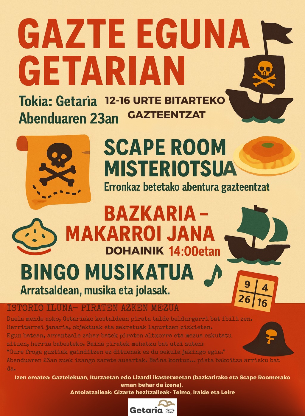 Izen ematea: Gaztelekuan, Iturzaetan edo Lizardi ikastetxean (bazkarirako eta Scape Roomerako eman behar da izena).