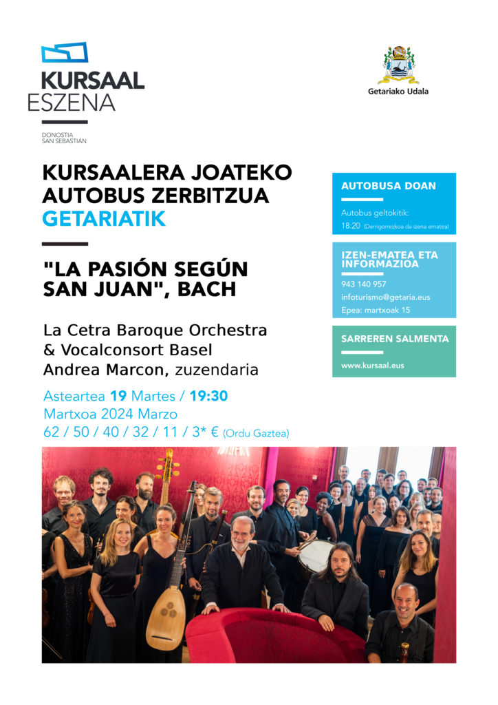 Kursaal Eszenak doako autobus zerbitzua jarri du Getariatik Bachen "Pasioa San Juanen arabera" kontzertua ikusteko.