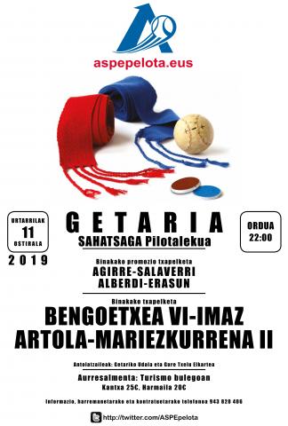ARTOLA – MARIEZKURRENA II22:00etan, Sahatsaga kiroldegian.Aurresalmenta: Turismo Bulegoan