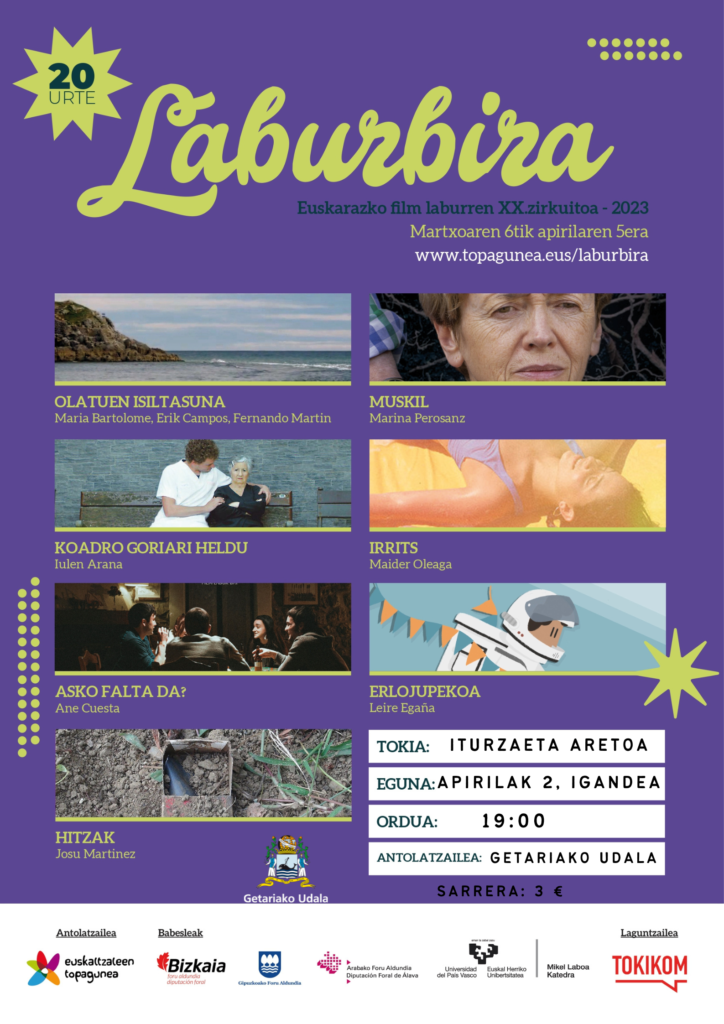 LABURBIRA 2023, euskarazko film laburren zirkuito ibiltariak, Getaria bisitatuko du aurten ere bere XX edizioan. Laburbirak 7 film laburrez osatutako bilduma bat eskaintzen du aurten, eta, gaur egungo zinemaren erakusgarri bakar gisa gure sortzaileen lanaz gozatzeko aukera emango die herritarrei, eduki eta estilo guztietako filmak biltzen baititu. Gaur egungo Euskal zinemagintzaren ispilu.